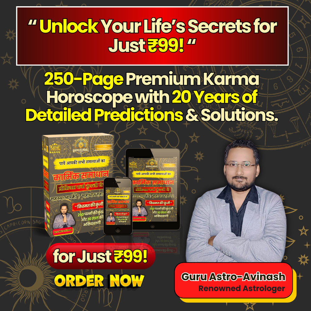 Discover what this year holds for you with an in-depth report of your monthly horoscope, as outlined in your Premium Karma Kundali report.